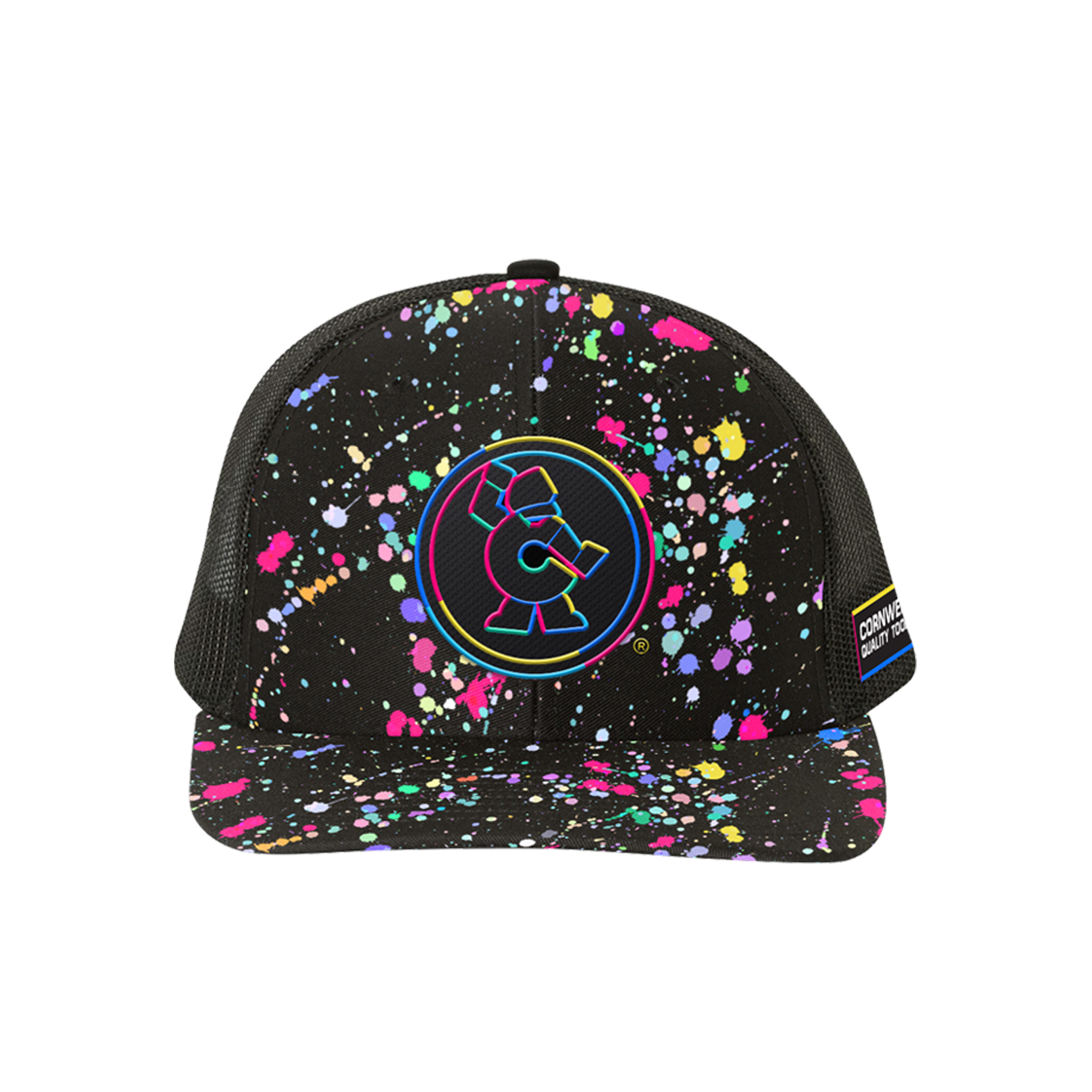Mesh back with multi-color design. Embroidered logo on front. Logoed patch on side. Snapback closure.